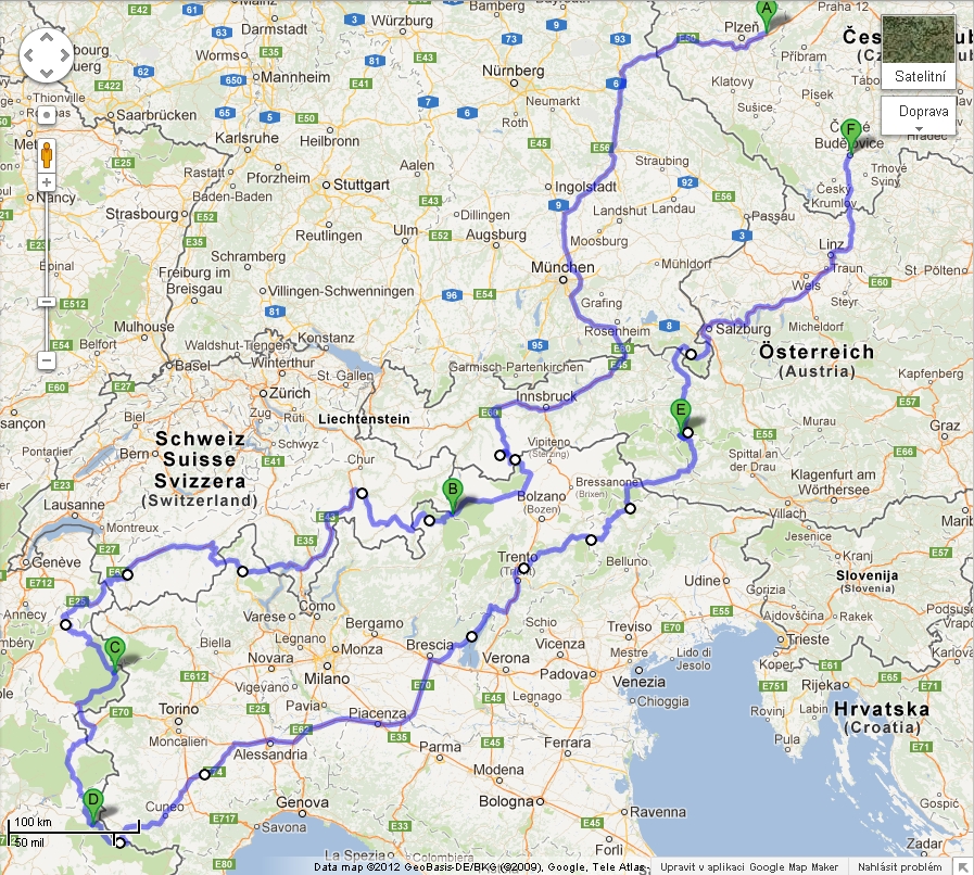 Etapy: (nakonec po zralé úvaze navrhuji tuto zkrácenou variantu a východní Alpy dát jindy)