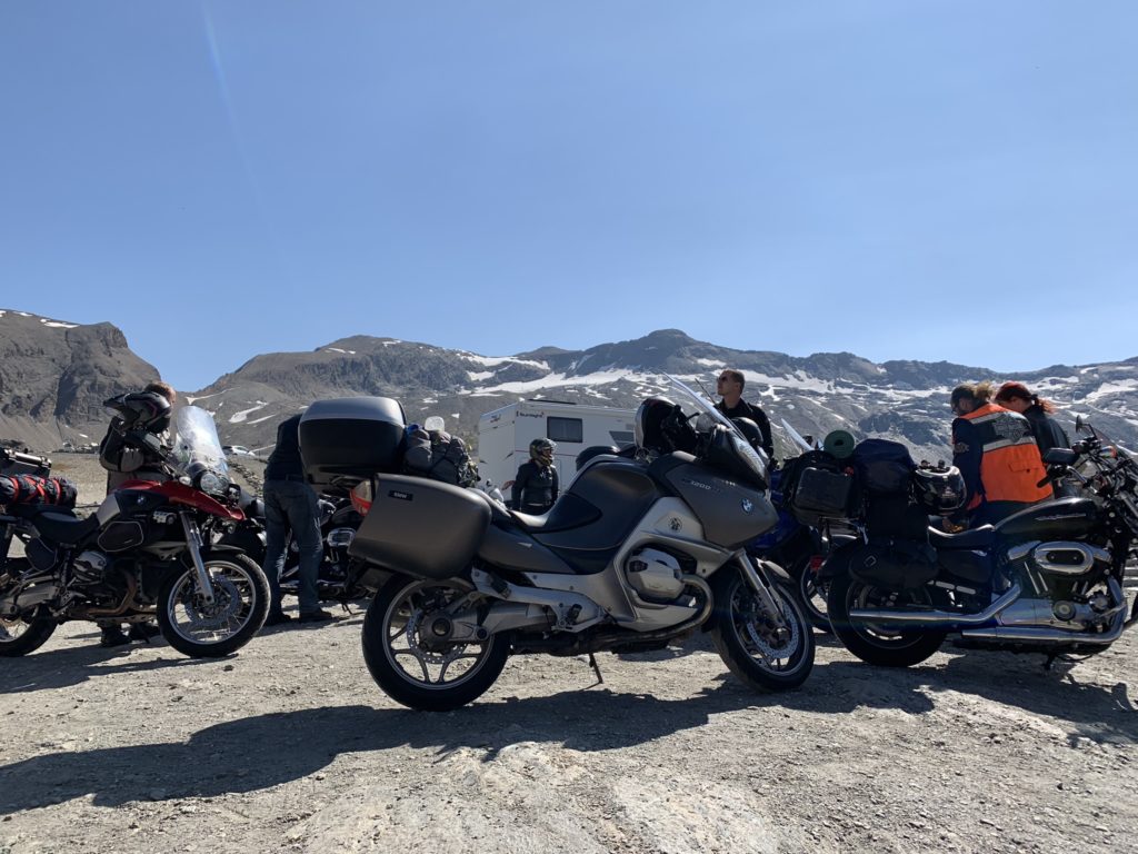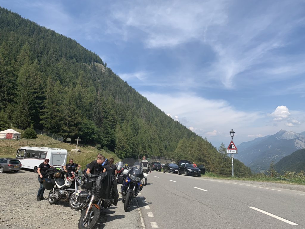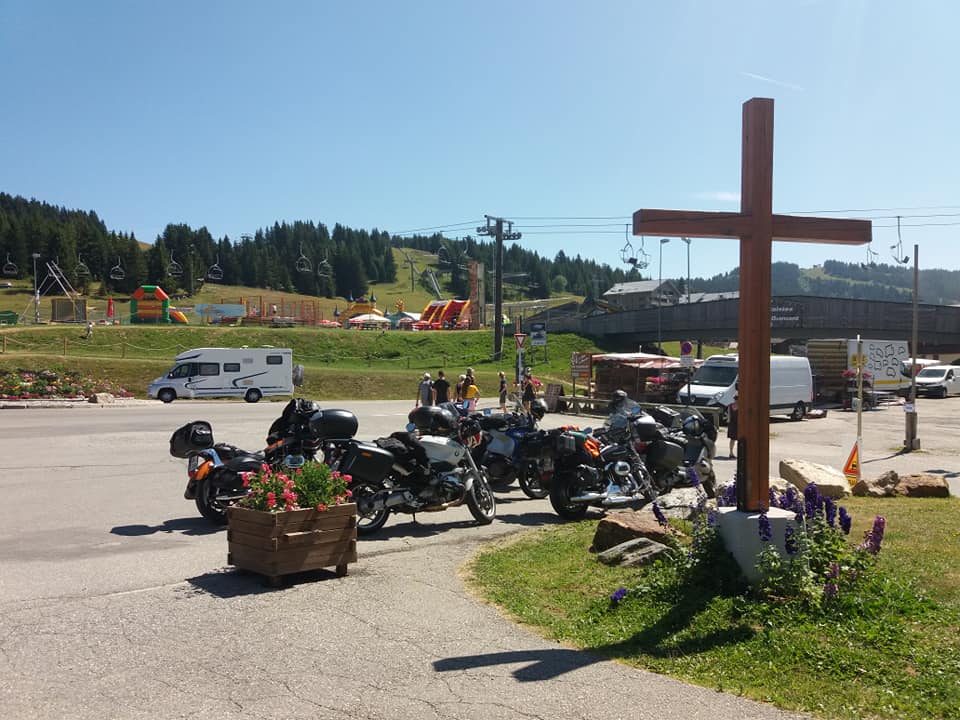 Mont Blanc se s námi loučí krásným ránem a my pokračujeme na Col des Saisies, tam naše peněženky odlehčí klobásky a sýry, které nám pak na další cestě dělají společnost a radost. Dále vyrážíme na Cormet de Roselend a naše touhy se upírají k vrcholu dne Col de l’Iseran, ke kterému se máme dostat se zajížďkou na St. Little Bernard pas. Jenže těsně před Roselendem Dragon páchá drobnou jezdeckou nepozornost a jeho Daddly ho odměňuje vymrštěním ze sedla. Rekognoskace šrámů odhaluje problém s těsněním na přední brzdové hadičce. Po krátké poradě sjíždíme dolů do Bourg-Saint-Mourice, kde ukončujeme dnešní etapu. Část výpravy doprovází Dragona s asistenční službou na zábavnou dobrodružnou hru hledání servisu a druhá část se odjíždí ubytovat do kempu. V blízkosti kempu teče malý alpský potok, do jehož tůněk nakládáme svá rozžhavená těla. V podvečer se tlupa zase dává dohromady, Dragonův Daddly dostal nové těsnění (za hříšné peníze) a pojistku (z vlastních zásob) a byl připraven na další etapy. Ještě je třeba upravit itinerář, což přidává vrásky na čele pana Itineráře. Nezdolaných 120 km je třeba nějak rozumně rozdělit, aby denní nájezd nepřesahoval 300.