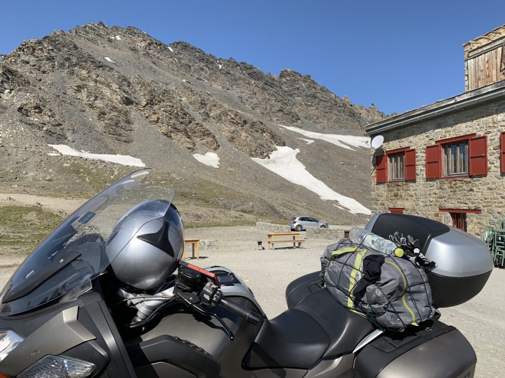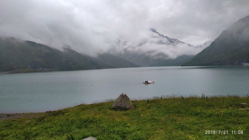 Začátek dne trošičku pokazila moje zapomětlivost, a tak jsem se pro tu powerbanku v koupelně musel vrátit zpátky, zatímco kolona čekala. Ale pak jsme začali stoupat údolím d’Isere k první dnešní metě. Iseran je pohodový a krásný paso, na jehož vrcholu nás čekalo slunce i měsíc najednou. A kdy jsme se dostatečně vyáchali, už nás čekal Mont Cenis pas se svými slony, malinami a borůvkami v lahodném pudinku. A taky ovečky (pro někoho kozy). Tímto se uzavřela dokonalá část dne. Čekalo nás zhruba 150 km italskými nížinami kolem Torino, a ukázalo se, že je tam fakt horko. Spaření a vyčerpaní konečně dorážíme do Vivirone, kde má jezero o něco vyšší teplotu než vzduch. A ke všemu ti komáři. Ještě v osm to vypadá, že avizovaná diskotéka byla asi někam přeložena, ale hnedle po skvělé pizze a lahvinkách italského vínka jsme vyvedeni z omylu. Ani s nocí teplota v téhle prádelně výrazně neklesla a tak jedinou možností bylo schlazení ve studené sprše (alespoň jsme ušetřili za coin).