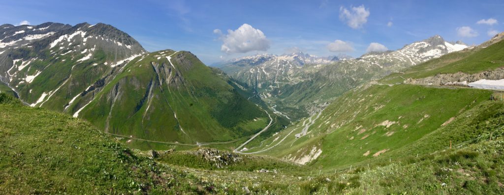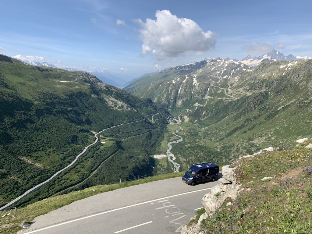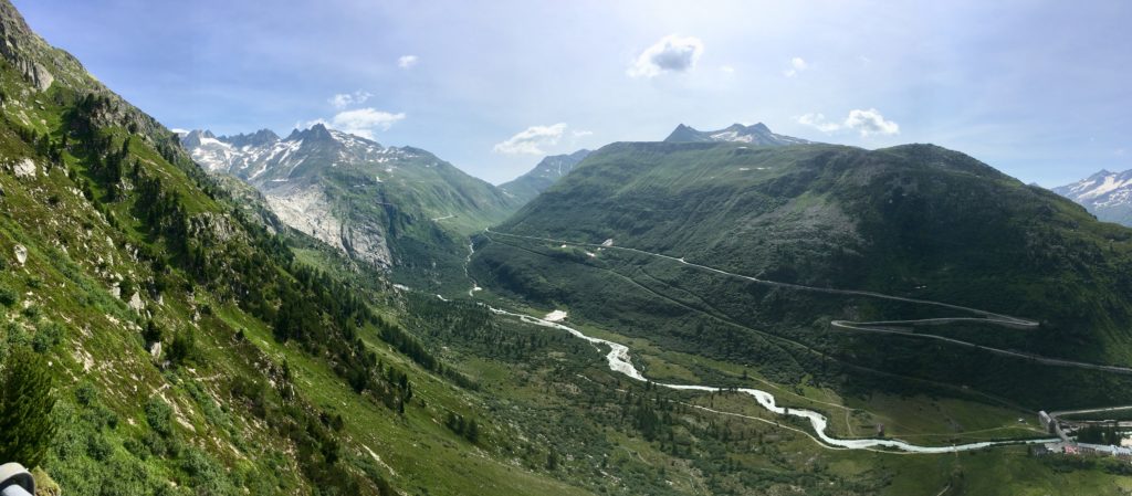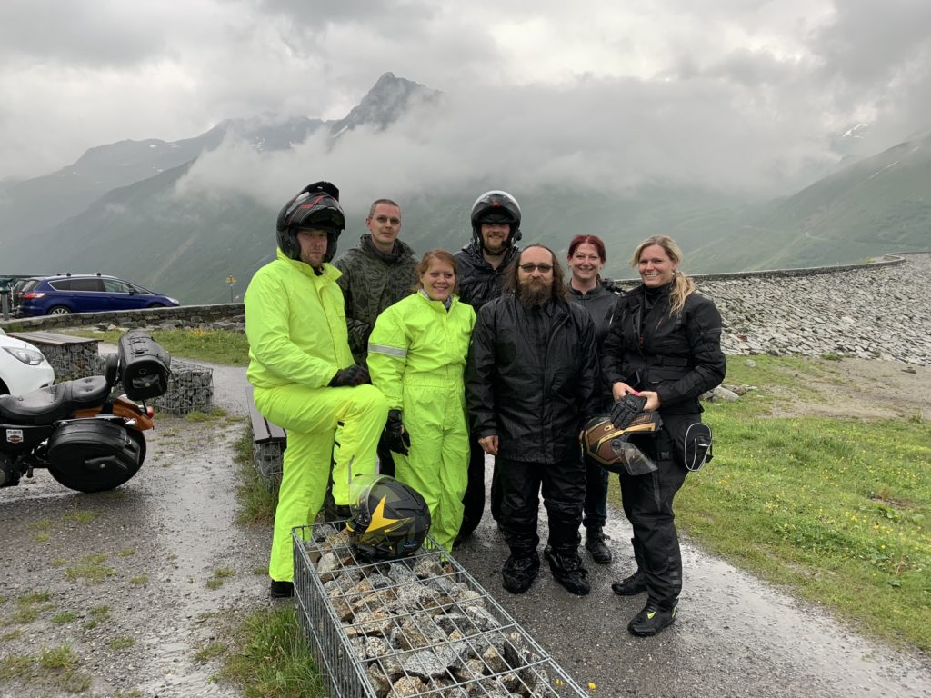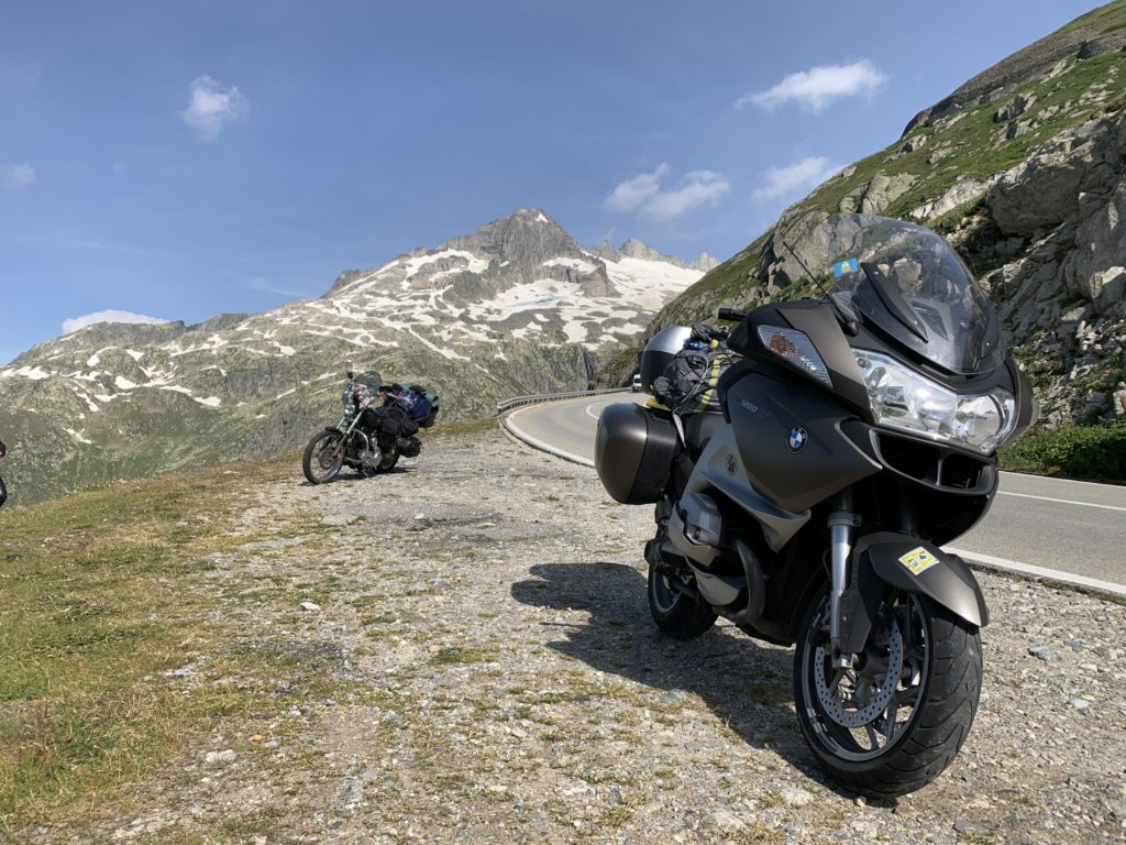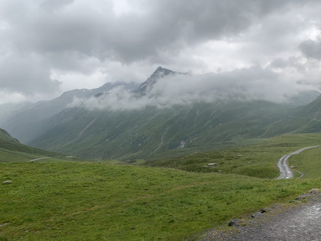 Silvretta Hochaplenstrasse je první alpskou cestou, kterou projíždíme. Počasí se mírně kazí a slabší povahy vytahují nepromoky (Kití a Čára už je mají.). Silvretta je malebná cesta, kde potkáte pářící se krávy na silnici a pokocháte se pohledem na přečerpávací elektrárnu vklíněnou mezi horské masivy (). Zbytek dne patří přesunu do Švýcarska. Část výpravy a Vikingova otevřená brašna sice touží po Bodamském jezeru, ale omyl se podaří po najetí zhruba 60ti zbytečných kilometrů odstranit a kolona se zase setkává na odpočívadle ve Švýcarsku. Důležitá informace: Čárovi chřastí řetěz. Za Churem odbočujeme a začínáme stoupat až na Oberalpass. A pod ním v Andermattu nacházíme azyl v mongolském kempu.