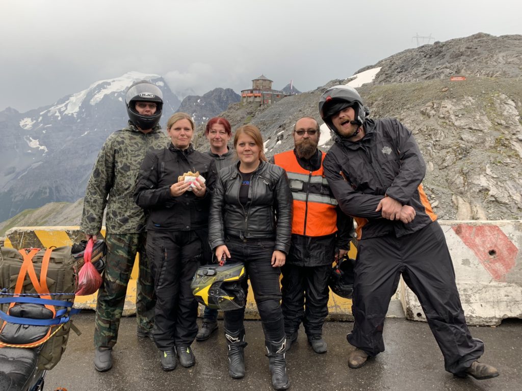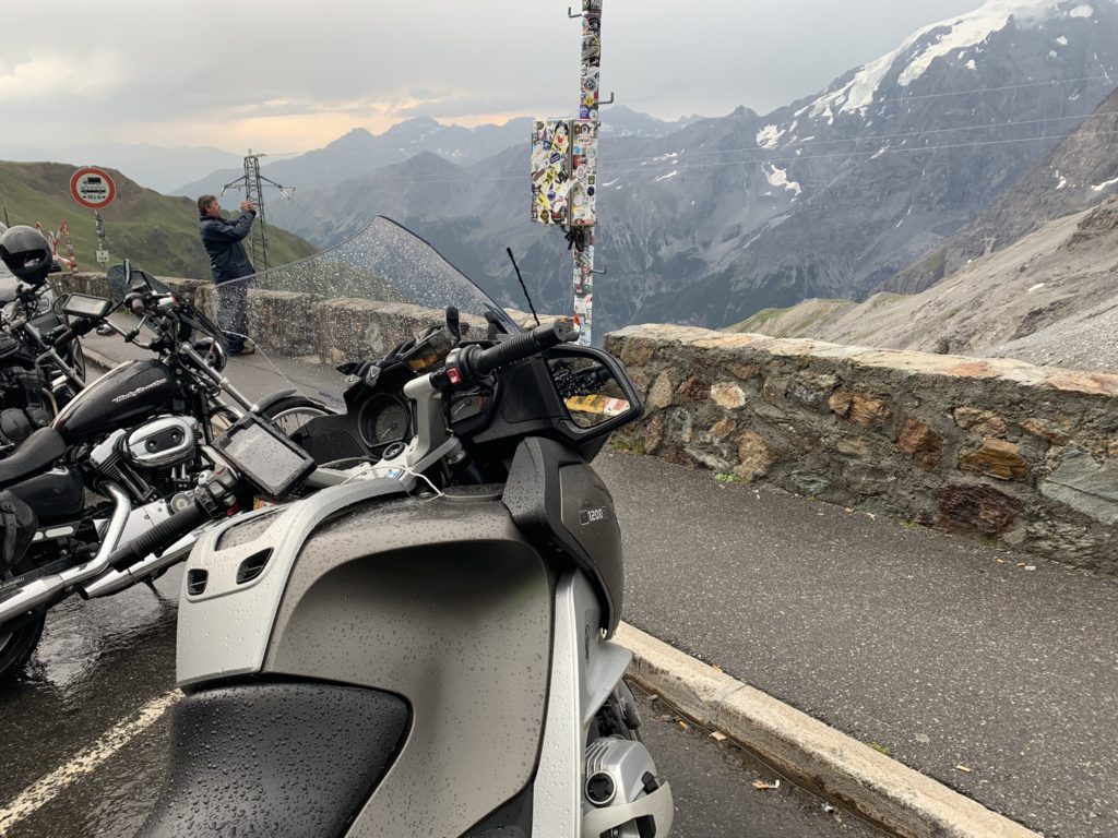 S nadšením se loučíme se super kempem a vyrážíme směr vrcholný okamžik ve Švýcarsku. Třináctka je skvělá rychlostní silnice, kterou si užije každý motorkář. Krásně se vlní majestátným údolím a dovede vás až na odbočku na Julier pass. A znovu: široká silnice mezi masivy hor, zleva doprava a zprava doleva kolébá se mašina a řidiči září úsměv na tváři. Nádhera a srdce plesá. Švýcarsko nás nepřestává okouzlovat. Čím víc se ovšem blížíme k Itálii, tím víc se na nás kaboní počasí. Na Fuorn pass se rozhodujeme mezi obědem a unikem před deštěm a nakonec volíme to druhé. V Santa Marii, patnáct kilometrů pod pasem Alp číslo dvě, kontrolujeme meteoradar a řešíme podobnou otázku: najíst se nebo jet dál. Déšť nás znovu přinutí pro volbu číslo dvě. A tak sólově vyjíždíme švýcarskou stranou na Stelvio. V horní části za deště. Nahoře se ujišťujeme, že Stelvio je sice legenda, ale proč vlastně? Skoro vždycky tu prší, když tu jsme my a ty zatáčky to je spíš mučení než potěšení. Klasický stelvijský bratwurst se zelím, alespoň částečně tišší naše nouze a potřeby. S rozhodnutím některých, že tady jsem byl naposledy, sjíždíme na Trafoi a vytoužený odpočinek si trochu dopřejeme až na Resii. Stany stavíme v třetí zemi dne. V rakouském Landecku v Riffleru (který jsme si dva dny předtím objednali). Večer přichází na řadu dlouho očekávaný Mourek. Jen se mihnul a byl pryč.