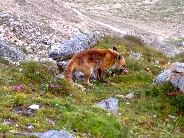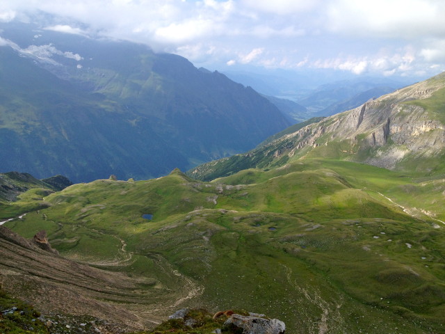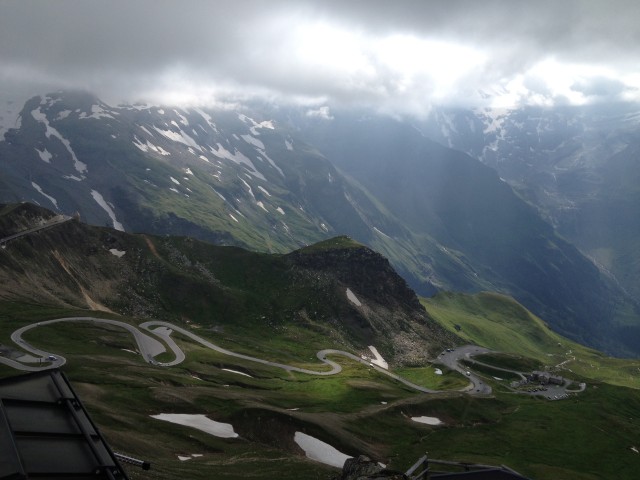 Cestu zpět jsme si v poslední fázi malinko usnadnili jakousi kolejovou lanovkou. Grossglockner se nám na parkovišti vyhlídky zjevil v celé své kráse. A frr na EWS. Tam už prorazilo sluníčko také. A výhled byl nádherný do všech stran. Liška si pod boudou EWS dávala nějakou kostičku a my směli vidět jedno údolí, kde se klikatěly serpentýny – spojnice Zell am See – Lienz, a druhé, které bylo ničím netknuté, ani cestičkou. Tam někde měla liška doupátko.