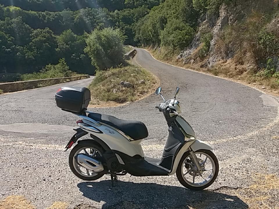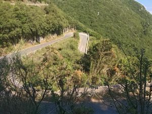 Byla to kochací jízda ! Ale všechny tornante ( a že jich bylo) Aprilia zvládala naprosto s přehledem ! Jsem nadšená. Co chvíli zastavuju, fotím a čichám vůně fíků , rozmarýnu a cítím vůni rozpáleného jehličí. Cestou mě díky mým foto zastávkám několikrát míjí pán ve Felicii, vezoucí na střeše trubky a lešení. Pokaždé se na mě vesele usmívá a mává mi.