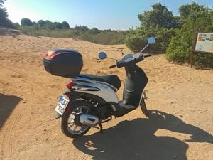 Dozvěděla jsem se, že skútr obsahu 125 ccm se dá půjčit za 20 EUR na den, což mi přišlo jako sympatická cena a tak jsem druhý den ráno se slovy „snad se ještě někdy uvidíme“ opustila Zdendu a vybavena šnorchlem, brýlemi, ručníkem a mapou ostrova vyrazila do půjčovny.