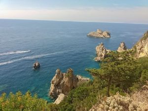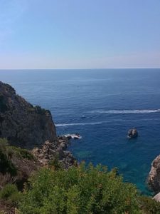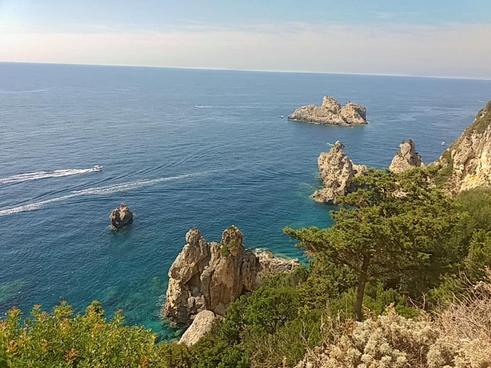 Všechno ale dobře dopadlo a asi po půl hodině cesty dojíždím do městečka Paleokastritsa. Je to opravdu ráj na zemi. Rovnou se jedu podívat nahoru ke kláštěru, kde mají být nejhezčí výhledy na okolí. A taky, že jsou. Doloženo fotkami :)