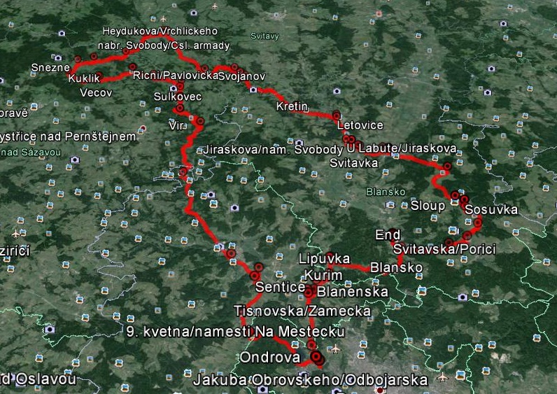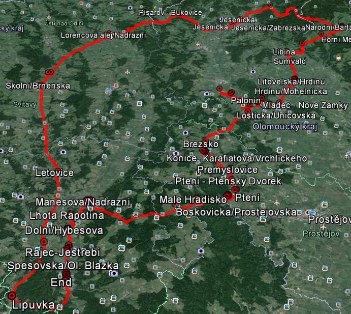 Sobotu, přemýšlel jsem nad Šumperkem za Hankou Ducho :-), ale zdá se mi to dost náročné na otočku dělá to cca 265 km a přes 5 hodin, tam jsem to plánoval přes nějaké ty serpentínky, ale zpět jen trochu a potom nejkratší a nudnější cestou dolů k Dědóškovi :-)