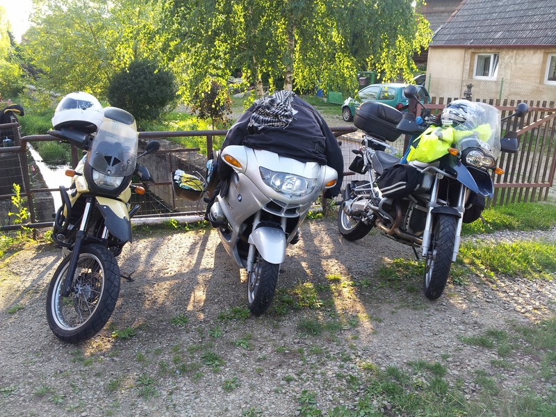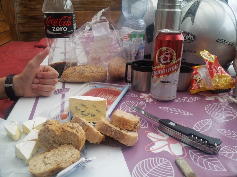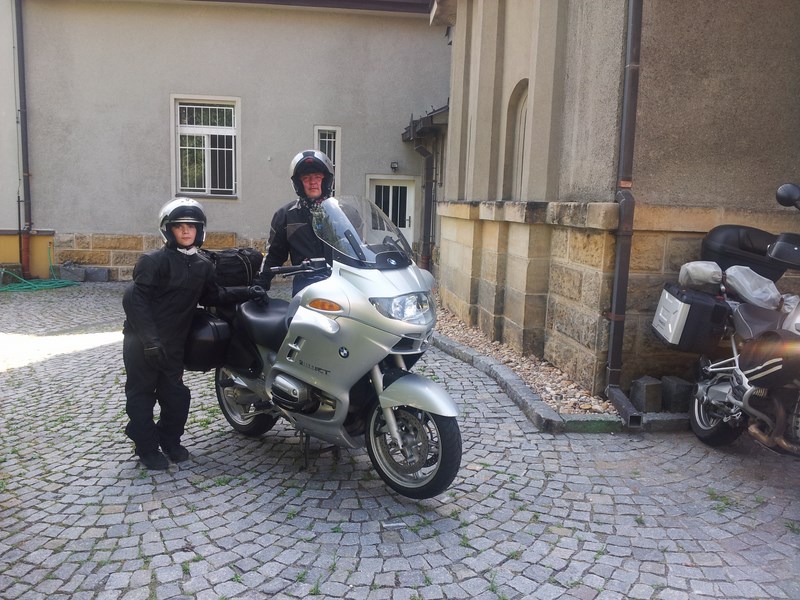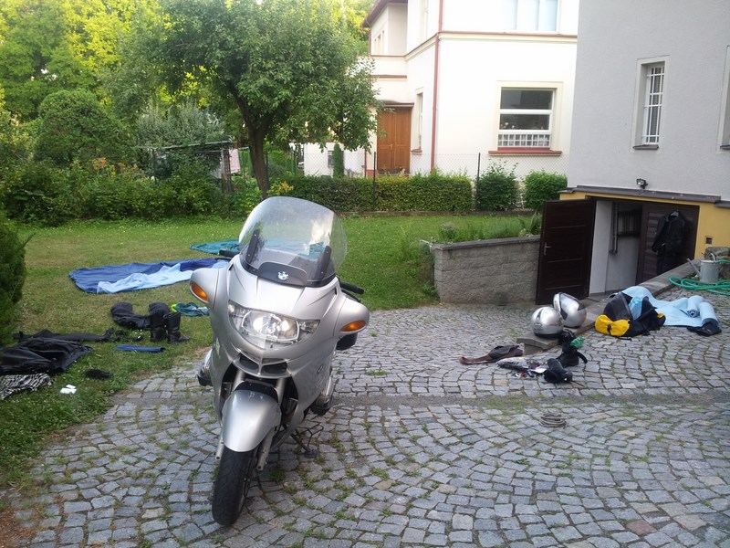 Záměr na výlet s předběžným popisem jsem rozhodil do našeho klubu EvangMoto, jestli se někdo nepřidá a podle očekávání se dlouho nikdo nehlásil. Popostrčil jsem trochu Sharkiho a dědka a jednu chvíli to vypadalo slibně. Nakonec jsem jel sám s mladým Chymem, ale to je dlouhej příběh a zmíním jenom střípky. Motorka byla připravená, servis, nové gumy. Protože jsem jel poprvé v tandemu, vynechal jsem top a místo něho přibalil válec, který obsahoval stan, dvě karimámy, dva spacáky. Do postranních kufrů se vlezlo všechno ostatní. Úvodní výdaje vypadaly sympaticky: 250,- Kč pojištění pro dvě osoby na 5 dnů a minimální nákup (hodně trvanlivého jídla zbylo z vody) asi tak za 300,- Kč.