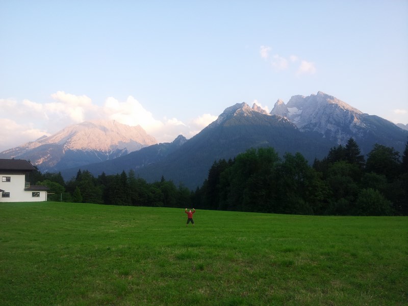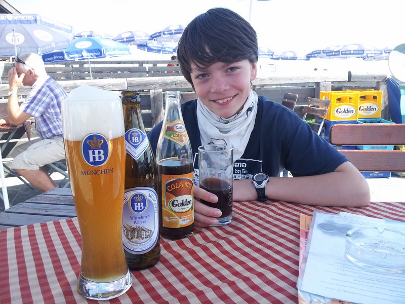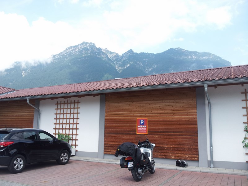 20140723_073811 Plánovaný odjezd v 7:00 se asi o 30 minut opozdil. Vítal nás krásný slunečný den a před námi cca 480 km zejména dálničního přesunu k evropským velikánům.  Dědek mne doprovodil kousek k hranicím a pak se vydal na svou cestu na sever. 8:15 jsme doplnili pohonné hmoty naposledy na českém území (12,5 l za 497,- Kč) a zakoupili rakouskou známku za 160,- Kč a nabrali směr Regensburg – Mnichov. Mnichov jsme se rozhodli projet po středním západním okruhu, protože jsme mířili po 95 na Ga-Pa. Míjeli jsme administrativní i výrobní prostory BMW, což Chyma rozveselilo, i konkurenční Mercedes. Drobná zácpa na výpadovce z Mnichova kvůli opravě tunelů. Cca 60km za Mnichovem se začínají zvedat kopce a dálnice končí. První horské fotky ještě s pozadím komerčních domů Garmische a pak se vydáváme směr Fernpass. Konečně klikatá cesta zalesněným údolím kolem řeky, pomalu se vlnící a lehce stoupající. Protože Fernpass je jeden z hlavních průjezdů mezi DE a A, jak se mi zdálo, cesta byla docela vytížená. Samotný vrchol passa je dost hnusnej a nestál ani za zastávku, ale kousek předním je krásný vyhlídka na jezero, stejně jako kousek za ním Fernsteinsee a zámek, kde jsme také chvilku postáli. Zhruba 50ti kilometrový dojezd do Landecku jsme vzali po okreskách a byla to pohodová jízda. Překvapivý dojezd do Landecku ve 14:00 nám nabídl celé volné odpoledne, které jsme kromě ubytování strávili výletem do města, na zámek a zmrzlinu (2,20€), nákupem místních nápojů (3,26€), dvojitou večeří a povídám u řeky. Měřák stavu pohonných hmot se ani nerozsvítil a celková délka najetých km se zastavila na 493 (64349).
