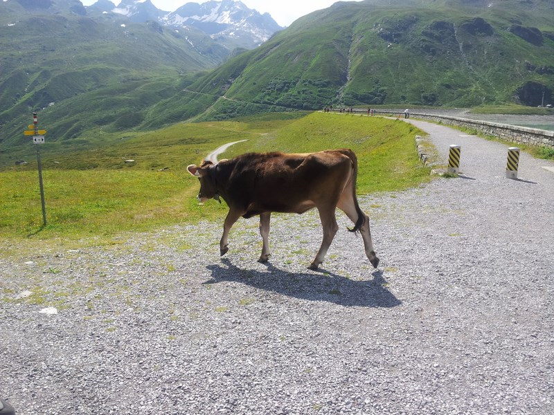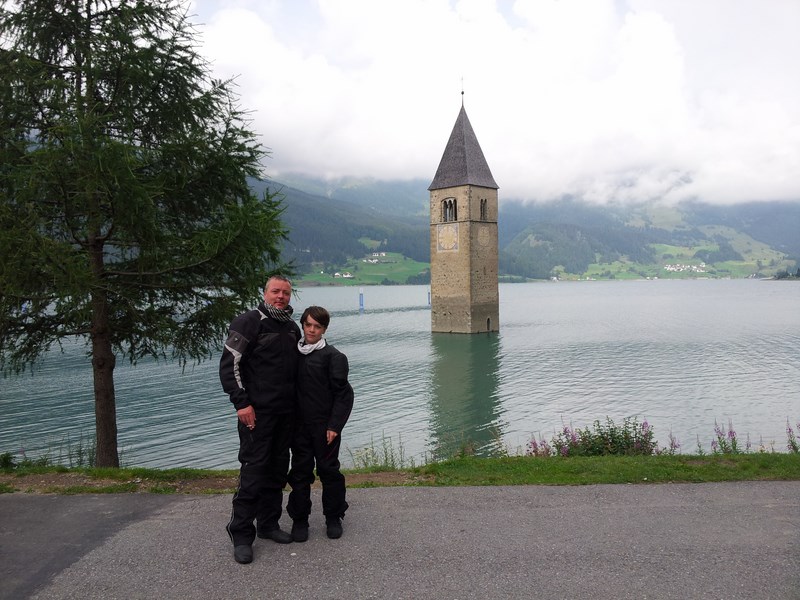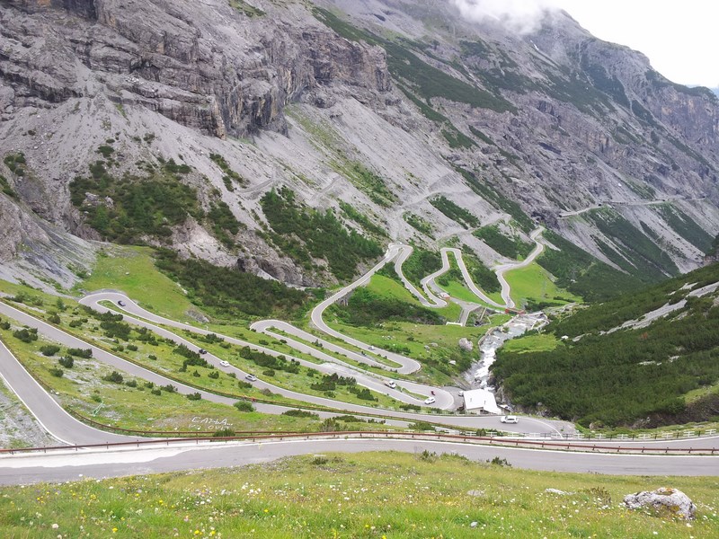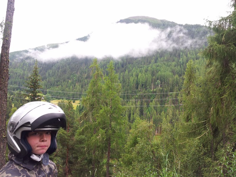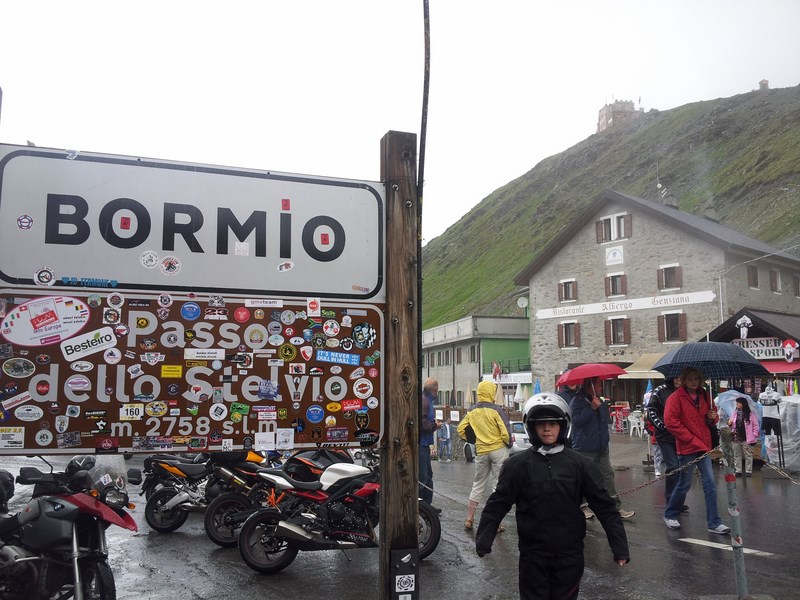 Čekal nás luxusní italský výlet, jenže nízko položená oblačnost, temně a nebezpečně obklopující a zahalující okolní kopce naznačovala, že všechno asi nebude v italské stylu azuro. Vyrážíme a proplétáme se pár kapkami deště a snažíme se jim ujet na20140724_112311 jih, kde je trochu světleji. Na samoobslužné pumpě u kampu naplníme full (21 litrů za 29,4€) z čehož vyplývá, že za posledních 401 km z toho 300 po dálnici se spotřeba pohybovala 5,24 l na 100 km a to jsme to na dálnici ve dvou vůbec nešetřili. Původní plán jen údolím přímo z Landecku zhatila uzavírka silnice a nutnost vrátit se cca 5 km k LandekerTunelu. Na jeho druhé straně bylo jasněji, ale až tak jasno zase ne. Soupáme k Nauders po silnici číslo 180 až k Lago di Resia a podél Lago della Muta směrem na Merano k odbočce na Stelvio. Kraj už trochu znám a tak cesta ubíhá dobře. Stradu del Passo dello Stelvio jedeme stejným směrem jako loni (příště bych ji dal zase obráceně), přes Trofoi. Jak se blížíme vrcholům, začíná přituhovat. Těsně pod mraky nasazujeme nepromoky. Posledních cca 20 tornates pod vrcholem bylo naprosté utrpení, pomaličku na jedničku vody všude kolem mrtě. Kdyby bylo Stelvio ještě o 200m výš, už bychom byli asi na mraky, přesto se to nahoře občas roztrhlo a ukázal se výhled, občas zatáhlo a bylo mokro. Pozitivní výhled byl, že strana, kam jsme měli odjíždět, vypadal jasněji a čistěji a také suše. Na velký pěší výlet to na Stelviu nebylo, takže jenom pár fotek, slíbený pohled holkám domů (1,7€ i se známkou), bratvüsrt se zelím 2x (11€) a s vidinou sucha směr Bormio – Livigno. Cesta je to nádherná, byla i suchá, ale už na Passo Foscango vidíme, kam to jedeme . Nad Švýcarskem černo až hrůza. Kousek za touto zastávkou přicházejí ke slovu kompletní nepromoky a cirka hodina jízdy ale fakt v dešti. Čekat se nechtělo. I tak je cesta z Livigno na St. Moritz velmi hezká. Tentokrát jsme u St. Moritz odbočili doprava zpět na A. Pěkná, vlnící se, široká, zkrátka stovková (dá se na ní jet sto i v dešti) cesta postupně klesá (stálo by to dát si jí obráceně) až se kousek za hranicemi pod Nauders setká s místem, kde jsme ráno odbočili do Itálie. Pršet přestalo před chvilkou a tak jsme až do Landecku dojeli po suchu. Doplnili jsme nádrž na příští den (18l za 25,29€) z čeho vyplývá, že tentokrát to bylo za 5,36. V místním šopu zakoupili pár potravin a nápojů (5,79€) a zaparkovali v kempu. V tu chvíli se strhl děsnej liják asi tak na hodinku. Jen jsme stačili popadnout limo a pivo a běžet do kempového krytého posezení, kde jsme přečkávali tuhle nepovedenou chvilku, po projasnění se i odstrojili a udělali si dobrou večeři s místními pochutinami. Večerní procházka podél řeky byla jen tak na vychození únavy. Odjeto 336 km (64685)