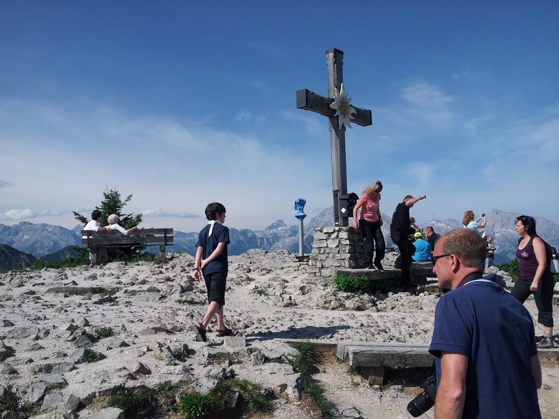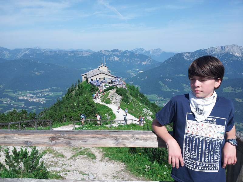 V ranní rose, ale s příslibem zatím pěkného počasí balíme všechno a přesouváme se za Bertechsgarden k parkovišti, odkud jezdí autobusy na Orlí hnízdo (je to asi 20 km). Přijíždíme před devátou a to nám umožní slušně zaparkovat (nakonec jsem i za moto dal 3€) a zakoupit si jízdenky nahoru i dolu na 9:25 za 20€. Motověci jsme ze sebe shodili a uložili v boxech za zálohu 1€, takže jsme nahoru mohli jen tak v kraťasech a sandálkách. 6,5 km dlouhá jízda autobusem do strmého kopce trvá cca 15 minut, vyhodí vás u tunelu, kterým projdete ke 124 dlouhému výtahu a ten vás vyveze přímo do hnízda. Nad ním je zhruba 150 dlouhá stezka plná skal a kamenů a především překrásných výhledů na Salzburg, okolní hory, Köningsee, údolí Bertechsgadenu. Nahoře můžete strávit max. 2 hodiny, ale je to dostačující na poklidnou prohlídku okolí i samotného hnízda a ještě zbude čas na posezení u občerstvení (8€ – samozřejmě s horskou přirážkou). Po jedenácté jsme jeli dolů, vyzvedli si motověci a dali si oběd v podobě v kepmu objednaných housek (3€) a sýru ze včerejška. V plánu byl ještě výjezd na Hiterbrandparkplatz, ale svrchu jsme viděli, že je to v lese, tak jsme chtěli projet ještě Purtschnellerstr., ale zastavilo nás mýtné (pro moto sice jenom 4€, ale stejně jsem to otočil a mazal zadem na Salzburg. V A poslední tankování (17,74l za 25€ – abychom dojeli do Čech) a nákup čokolád pro holky (blbej nápad, přivezli jsme je v dost tekutém stavu, ale lednička to spravila). Takže cca 12:30 vyrážíme směr domov, přes Linz, České Budějovice, Prahu do HK. Někde u Votic plníme nádrž po vrchol (21 litrů za 788,- Kč), ochlazujeme se v Mc (220,- Kč) a v 18:30 parkujeme na zahradě. 543 km (65614)